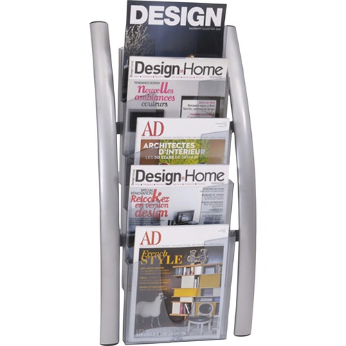Hang this Literature Wall Rack to display magazines, brochures and more. Five compartments with transparent containers display contents for perfect visibility when choosing something to read or showing off your work. Compartments hold A5 documents for visible display. Easily mount rack to your wall to add a contemporary decoration to your work space. Metal and acrylic construction provides stability while maintaining a unique, modern look.
