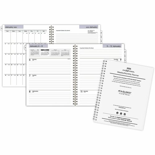 Versatile refill is designed for use with the AT-A-GLANCE G545 Dayminder Executive Weekly/Monthly Planner. Weekly/monthly format will help keep you on track. Dated planning pages range 12 months from January to December. Two-page-per-week spreads include ruled daily entries, Monday-through-Sunday scheduling, count of days/days remaining, holidays, and past, current and two future months reference in the upper left-hand corner. Wirebound refill also includes tabbed monthly overviews at the start of each month and a special, 16-page information section. Tabbed, two-page-per-month spreads offer unruled daily blocks, Sunday-through-Saturday scheduling, and a large notes area.