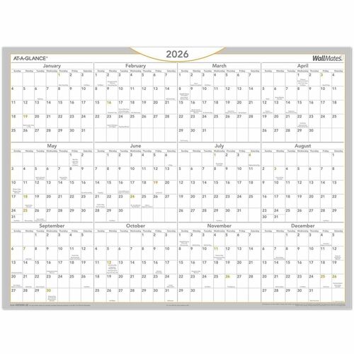 Turn your office walls, doors and other spaces into a dry-erase planning and note-taking center – instantly. Dry-erase yearly calendar offers a dated yearly format so you can view the whole year at once. Bright-white surface printed in gray with orange accent complements any smooth, hard surface. Erasable calendar is easy to use and goes up in seconds. Simply peel and stick the self-adhesive back on any hard flat surface. Setup requires no tools or hardware. Removable adhesive causes no damage to wall surface and leaves no residue. Dated planning ranges 12 months from January to December. Each month features unruled daily blocks, holidays and Sunday-through-Saturday scheduling. Dry-erase calendar includes a dry-erase marker.