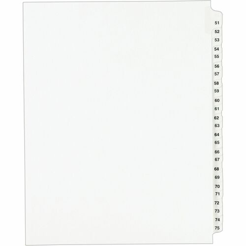 Dividers are ideal for index briefs, legal exhibits, mortgage documentation files and more. White paper stock features clear RipProof reinforced side tabs that are printed on both sides in Avery Style (Helvetica bold type). Binding edge is unpunched so indexes can fit any binding system.