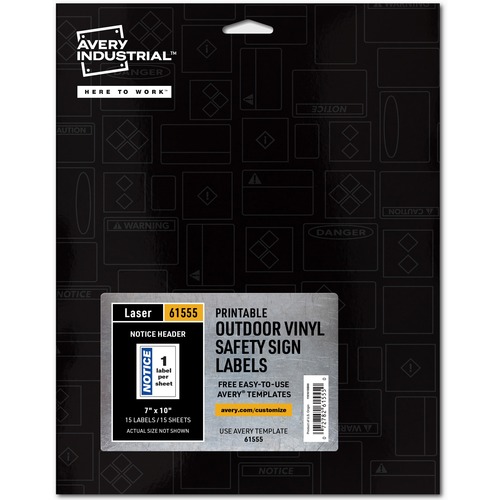 Customizable, self-adhesive vinyl signs come preprinted with a NOTICE header. Customize the rest of the sign with any standard laser printer. Ideal for outdoor and heavy-duty indoor applications, these UV-resistant vinyl signs let you instantly create new and replacement signs onsite so you can implement important messages without waiting. NOTICE is the preferred signal word to address practices not related to personal injury, such as exit and access signs, housekeeping messages and trespassing warnings. Industrial-grade, durable vinyl film and strong, permanent adhesive are ideal for construction, warehouse, manufacturing and medical facility applications. Sign labels stick firmly to metal, plastic, glass and wood. This 3.4 mil vinyl film also conforms to rough surfaces like concrete, cinderblock and industrial tubing, lasting up to 2 years outdoors. They are waterproof, fade-resistant and abrasion-resistant. Each sheet includes one label.