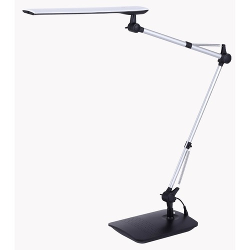Dual Swing Arm Desk Lamp provides ultimate flexibility with two adjustable lamp arms and a lamp head to personalize a light zone. Arms reach up to 49″ tall to clear monitors and other objects. Dimmer function features three brightness levels and a touch-sensitive power control for easy use. Flicker-free light zone is clear of shadows, halos and troublesome glares. Versatile base can be situated on a desktop or used with the included clamp mount to minimize desk clutter. Cost-efficient LEDs last up to 25,000 hours and use 85 percent less energy than incandescent lamps.