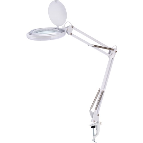 Clamp-On Magnifying Lamp includes a 3-1/2″ long glass lens that helps reduce eyestrain and allows you to easily view small details at a sensible range. Extensive, 36″ reach effortlessly clears monitors and other objects for convenient lighting. Fully movable, jointed lamp head provides multidirectional, focused lighting with a flicker-free light zone. Cost-efficient LEDs last up to 50,000 hours and use 85 percent less energy than incandescent lamps. Included clamp minimizes desk clutter and allows easy, tool-free desktop mounting.