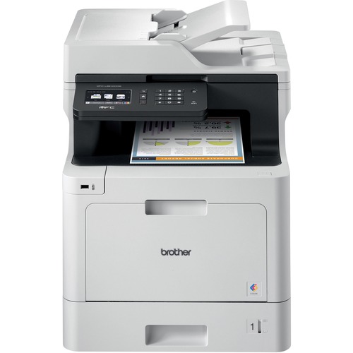 Color laser all-in-one features a 3.7″ color touch screen to save you time with easy menu navigation. It also enables enhanced workflow customization with the option to create up to 48 customized shortcuts to simplify your complex and frequently performed tasks. Wireless 802.11b/g/n and Gigabit Ethernet network interfaces let you easily set up, share and print from any connected computer or mobile device. Its fast print speed produces up to 33 pages per minute for time-saving performance. Automatic duplex printing helps reduce your costs and produce professional two-sided prints. Advanced security features help protect against unauthorized access and control costs by restricting printing on a per-user or group basis. Printer also features 512MB standard memory, 800 MHz processor speed, 250-sheet adjustable paper tray, 50-sheet auto document feeder, up to 2400 x 600 dpi resolution and more.