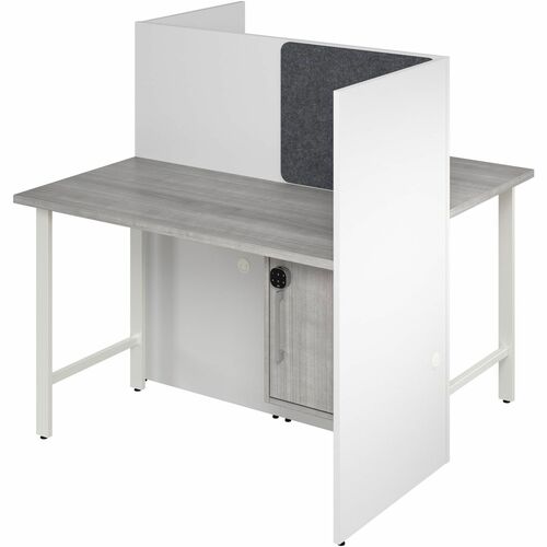 Bush Business Furniture Cube Desks,w/Cabinet/Tackbd,2-Person,47″x24″x48″,WE/PlatGY